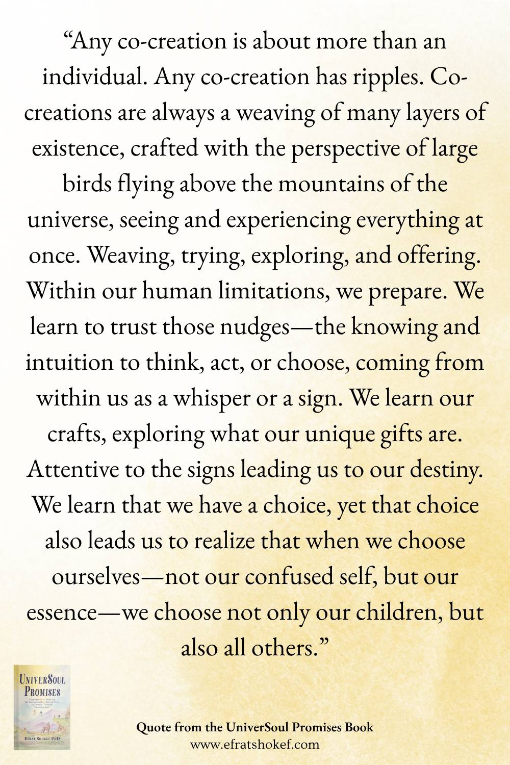 Dear Reader, This morning, I woke up with joy in my heart. It wasn't for a specific reason, though I do have a fairly relaxed day without many commitments, which always makes me happy... as it allows a smoother flow. It wasn't a joy of something past, either. Nor was it something coming up. Just that tingle of aligned joy. Joy that offers a reflection of heart-soul-reality alignment. Even if I can't add any "mind" level explanations. I have many such mornings and more such moments (soul-moments...), and my hunch is that most of you here know exactly what I'm talking about... At first, we need to recognize these moments... anchor the sense within all our layers... then, when we recognize them, they become a kind of compass... helping us stay aligned... It's officially the solstice today... and beyond, it's stretching for a few days now and will be for a few days ahead. A turning point. A turning point of in and out... some of us are ready to sprout into the world, others still need a few days, or weeks of inner integrations... listen to your own pace... and if you are a sensitive one, like myself, and the shifting energies invite deeper explorations, then take the time you need to integrate, and prioritize your own stability. When we are energetically stable, it is easier for our children to stay energetically in their flow, as well. Balancing ourselves, embracing the energetic invitation of these days and times, is a key to a shared, aligned dance with our children, of whom many are more ready for the energetic shifts taking place than we are. Yet, with this thought, be mindful whether your child is indeed holding the shifts with aligned joy, or if they are being challenged. Some, as light holders and vessels of light to and from Earth, may need greater attention and support these days. Get more sleep, spend more time outdoors, spend more time in nature, and stay well hydrated. The Feminine Frequency Festival Starts Today! I invite you to join me in the Feminine Frequency Festival - a global gathering of women light leaders. I’m teaching a mini-workshop at Feminine Frequency called CHILDREN AND PARENTS SHARED SOUL JOURNEY – NEEDED CONDITIONS FOR FULLFILLING THE PROMISES WE MADE TO OURSELVES, AND TO OUR CHILDREN. Happening on: Monday, December 22, 9:40 am Central European Time, 7:40 pm AEDT (3:40 am EDT & 00:40 am PDT - The beauty... as the festival takes place in a Facebook Group - You can join live, or catch up later :)). Just search my name or the presentation name during or after it was live, and you will find it. I'll be reading a mythical healing story from the UniverSoul Promises Book, and discuss the universoul promises, and how we grow in our alignment with each, and with all as a roadmap. No registration required, it’s free to join the festival and attend my talk, and many additional ones. HOW? (1) Today - join the Feminine Frequency festival community here: http://www.fb.com/groups/femfrequency (2) On Monday, Dec 22, 9:40 am CET... use this same community link to attend my talk. This will also be a powerful opportunity for continued connection! After my class (and before it), you can remain in the Feminine Frequency community with thousands of amazing women all over the world and enjoy many fascinating talks on all topics spiritual (and woo-woo). JOIN THE FESTIVAL GROUP HERE Thank you so much to all those who ordered UniverSoul Promises by now, and also to those who plan to and will order it in your divine moment. I am grateful for this book, the journey it took me on, and your continued support. Winners for the celebrational raffle have been contacted. If you entered and did not win, you should have received an email as well :). With the Knowing of Joy, and a Blessing for Inner Awakening, Efrat |